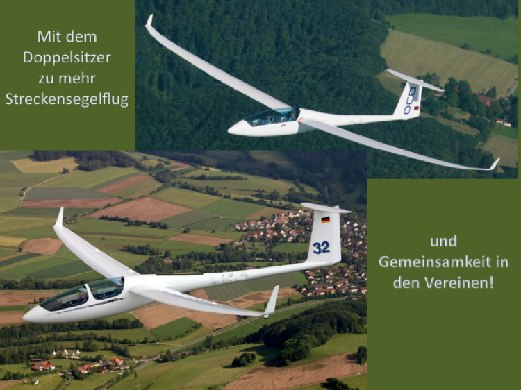 Die Sportfachgruppe Segelflug NRW fördert den Einsatz von Doppelsitzern in den Vereinen des AEROCLUB|NRW durch die „Initiative Breitensport – Streckensegelflug für Viele“. Mit dem Artikel „Der Nutzen des Doppelsitzers in den Luftsportvereinen und als Basis für den Segelflugbreitensport“, der 2018 im Luftsportmagazin erschienen ist, wird diese Initiative begründet.