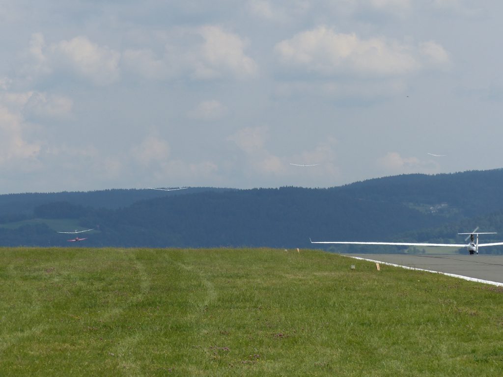 Von der Besucherterrasse am alten Terminal aus lassen sich Starts und Landungen gut verfolgen. Gestartet wird ab etwa 11 Uhr, wenn es die Wetterlage zulässt. Innerhalb einer guten Stunde werden dann alle Segelflugzeuge per Flugzeugschlepp oder mit ihren Hilfsmotoren in die Luft gebracht. Der Bayreuther Flugplatz hat dann kurzzeitig mehr Starts als der Frankfurter Flughafen. Mit den ersten Landungen ist etwa zwischen 16 und 17 Uhr zu rechnen. Kommen die Flugzeuge gruppenweise wieder, sorgt auch das für spektakuläre Bilder. Auf der Besucherterrasse gibt es auch Informationen über den aktuellen Stand des Wettkampfes und die Meisterschaft allgemein.
