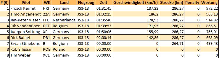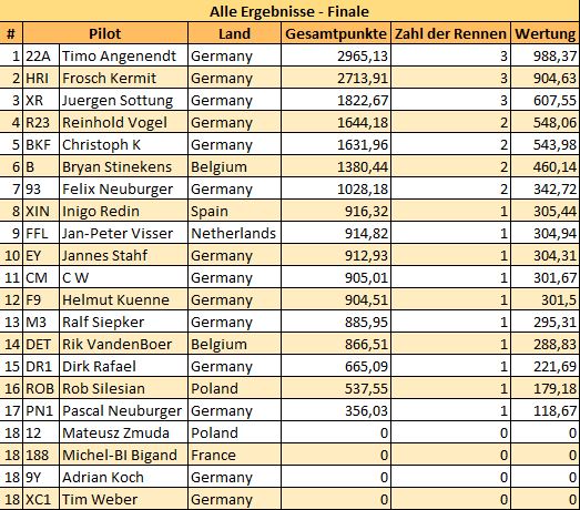 So haben es leider nur 3 Piloten geschafft, die geforderten 3 von 5 Wertungen einzureichen.