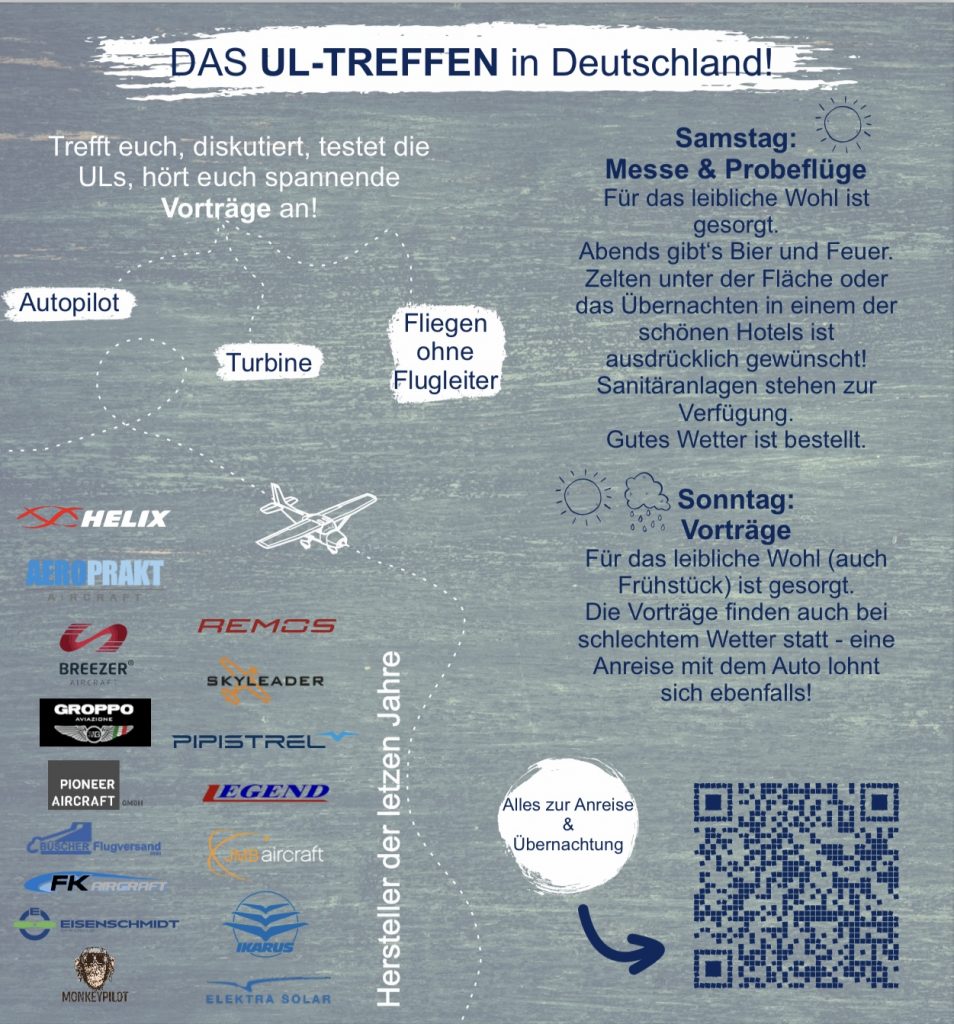 Kommt vorbei, fühlt Euch wohl und erlebt drei Tage voller spannender Begegnungen und Informationen rund um die UL-Welt.