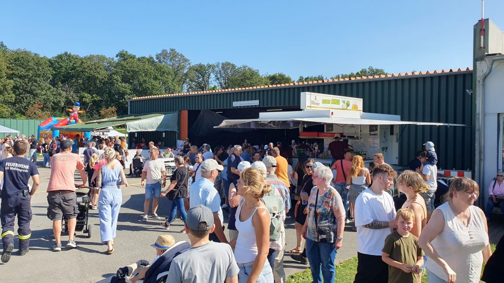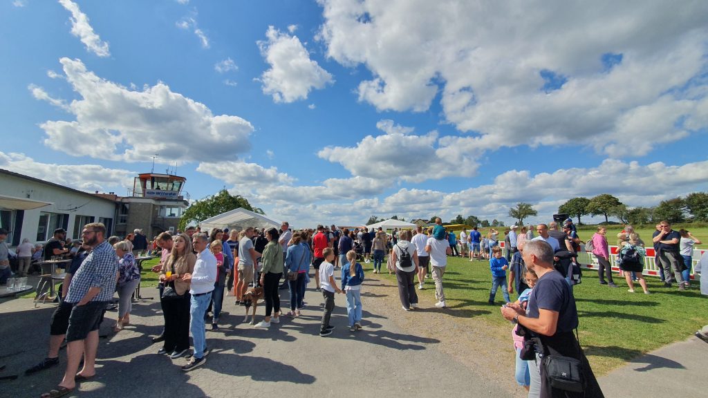 Die Flugplatzgemeinschaft Berg-Mark in Radevormwald lud unter der Federführung des Luftsportvereins Radevormwald und mit Unterstützung des LSC Wuppertal sowie des LSV Schwelm zum Tag der offenen Tür am 24. und 25. August 2024 ein. Das herrliche Spätsommerwetter lockte weit mehr Besucher an als erwartet. Am Sonntag reichte selbst die großzügig vorbereitete Wiese als Parkfläche nicht aus, sodass die Feuerwehr kurzfristig weitere Flächen öffnen musste.